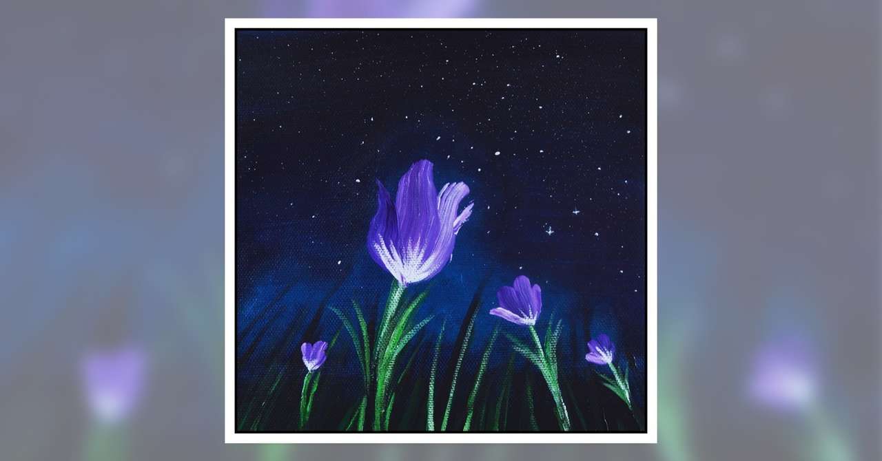 アクリル絵の具を使用した 夜に咲く美しい花 の描き方 Junya Art Note