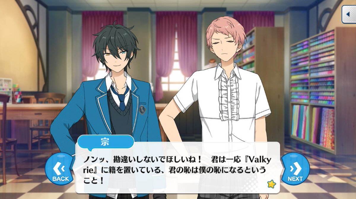 あんスタ台詞bot V Twitter 宗 ノンッ 勘違いしないでほしいね 君は一応 Valkyrie に籍を置いている 君の恥は僕の恥になるということ そんなのは我慢できないッ それだけの話なのだよ 僕の携わる衣装は常に完璧で美しい そうでなくてはならない