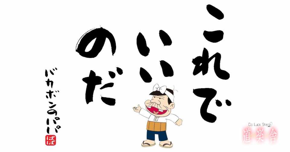 わしは バカボンのパパなのだ この世は むずかしいのだ わしの思うようにはならないのだ でもわしは大丈夫なのだ わしはいつでもわしなので 大丈夫なのだ これでいいのだと言っているから 大丈夫なのだ あなたも あなたで それでいいのだ それでいいのだ それでいいのだ