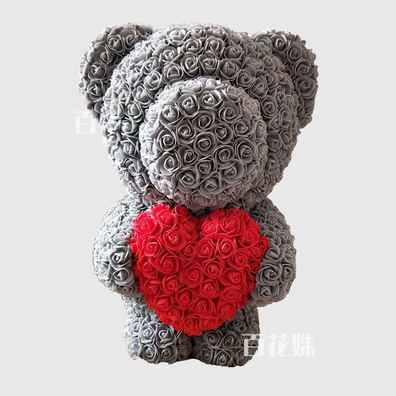 玫瑰花熊40cm仿真花创意定制永生花抱心熊生日礼物玫瑰熊批发 价格 厂家 哪里买 我有货 B 5yoho Cn